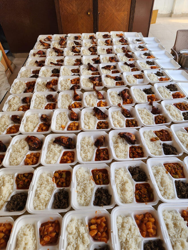 We prepare a minimum of 60 meals per day, going up to 100 or more, during the month of Ramadan.